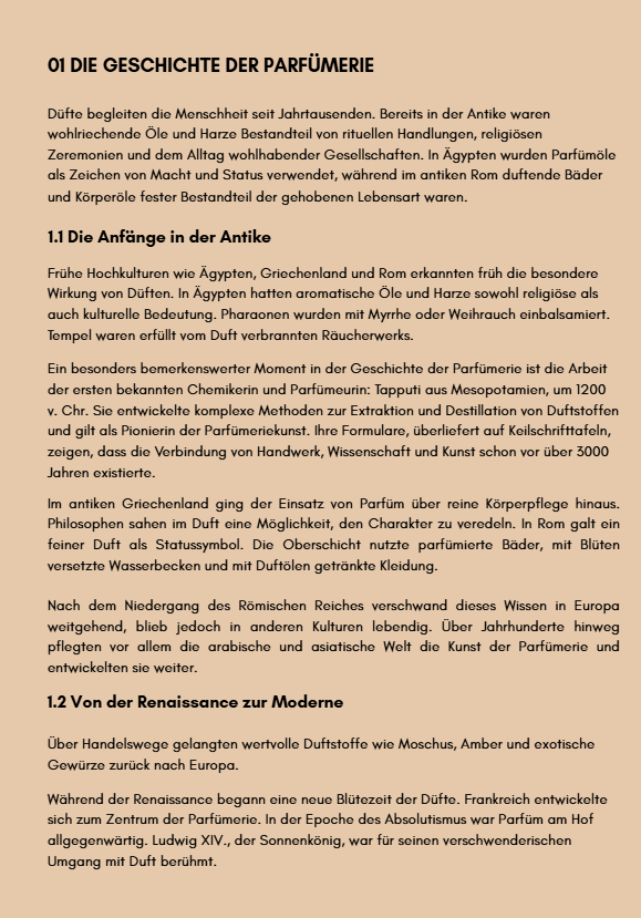 Der Scent Guide verbindet Parfümgeschichte, fundiertes Duftwissen, mehrere kurze Duft-Quizzes und persönliche Reflexionen – für alle, die ihren Duft nicht nur tragen, sondern bewusst gestalten möchten.